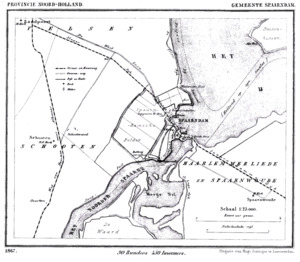 Spaarndam is a small village in the province of North Holland, the Netherlands, on the Spaarne river and the IJ lake. The oldest part of the village, on the western side of the Spaarne, belongs to the municipality of Haarlem; the newer part on the eastern side is a part of the municipality of Haarlemmermeer. The village is built around a dam in the river, which is also the division line of the two municipalities.