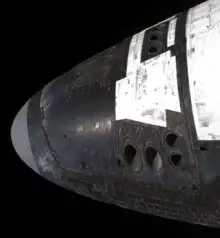 During the early design process of the orbiter, the forward RCS thrusters were to be hidden underneath retractable doors, which would open once the orbiter reached space. These were omitted in favor of flush-mounted thrusters for fear that the RCS doors would remain stuck open and endanger the crew and orbiter during re-entry.[4]