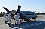 The Boeing X-37, also known as the Orbital Test Vehicle (OTV), is a reusable robotic spacecraft. It is boosted into space by a launch vehicle, then re-enters Earth's atmosphere and lands as a spaceplane. The X-37 is operated by the United States Space Force, and was previously operated by Air Force Space Command[9] until 2019 for orbital spaceflight missions intended to demonstrate reusable space technologies. It is a 120-percent-scaled derivative of the earlier Boeing X-40. The X-37 began as a NASA project in 1999, before being transferred to the United States Department of Defense in 2004.
