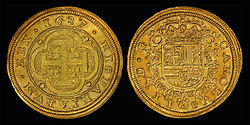 The first escudo was a gold coin introduced in 1535/1537, with coins denominated in escudos issued until 1833. It was initially worth 16 reales. When different reales were introduced, the escudo became worth 16 reales de plata in 1642, then 16 reales de plata fuerte or 40 reales de vellón from 1737.