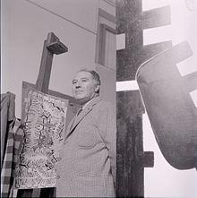 Spatialism (Italian: Spazialismo) is an art movement founded by Italian artist Lucio Fontana[1] in Milan in 1947 in which he grandiosely intended to synthesize colour, sound, space, movement, and time into a new type of art. The main ideas of the movement were anticipated in his Manifiesto blanco (White Manifesto) published in Buenos Aires in 1946. In it he spoke of a new "spatial" art in keeping with the spirit of the post-war age. It repudiated the illusory or "virtual" space of traditional easel painting and sought to unite art and science to project colour and form into real space by the use of up-to-date techniques such as neon lighting and television. Five more manifestos followed; they were more specific in their negative than their positive aspects, and carried the concept of Spatialism little further than the statement that its essence consisted in "plastic emotions and emotions of colour projected upon space". In 1947 Fontana created a "Black Spatial Environment", a room painted black, which was considered to have foreshadowed Environment art. His stabbed and slashed canvases (beginning in 1949 and 1959 respectively) are also considered to embody Spatialism. An example of the slashed type (the slash made with a razor blade) is Spatial Concept Waiting (1960, Tate, London). Although Fontana's ideas were vague, his outlook was influential, for he was one of the first, certainly the first European artist to truly promote the idea of art as gesture or performance, rather than as the creation of an enduring physical work.