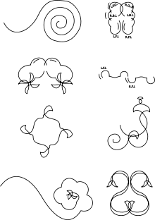 While compulsory figures were standard patterns derived from the figure 8, the special figures were elaborate patterns of the skaters' own invention. These designs included rosettes, stars, crosses, and other elaborate curlicues. The building blocks for special figures included not only the elements of the standard compulsory figures, but shapes known as beaks, spectacles, and cross-cuts.