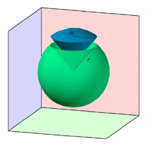 If the radius of the sphere is denoted by r and the height of the cap by h, the volume of the spherical sector is