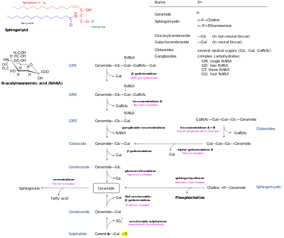 - ^ Futerman AH (December 2006). "Intracellular trafficking of sphingolipids: relationship to biosynthesis". Biochimica et Biophysica Acta (BBA) - Biomembranes. 1758 (12): 1885–92. doi:10.1016/j.bbamem.2006.08.004. PMID 16996025.