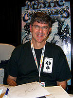 The character was originally designed by artist Rick Leonardi, with Peter David brought onto the series as writer to flesh out the character's alter ego, Miguel O'Hara, and supporting characters. Spider-Man 2099 #1 was written by Peter David, pencilled by Rick Leonardi, inked by Al Williamson, and lettered by Rick Parker.[1] David named the character after his friend, actor Miguel Ferrer.[2] Spider-Man 2099 #1 is the highest-selling single issue of any comic written by Peter David.[3]