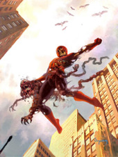 In some intercompany crossovers with DC Comics, Spider-Man has worked alongside Superman twice, once to defeat Doctor Octopus and Lex Luthor and the other to stop Doctor Doom from providing the Parasite with long-term access to the powers of both the Hulk and Wonder Woman. He also worked alongside Batman to defeat Carnage and the Joker, the two later collaborating to defeat the Kingpin and Ra's al Ghul, with Fisk eventually aiding the heroes in the end.