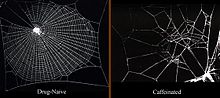 Certain drugs, including caffeine, affect the way spiders build webs.