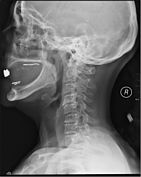 A radiographic evaluation using an X-ray, CT scan, or MRI can determine if there is damage to the spinal column and where it is located.[9] X-rays are commonly available[85] and can detect instability or misalignment of the spinal column, but do not give very detailed images and can miss injuries to the spinal cord or displacement of ligaments or disks that do not have accompanying spinal column damage.[9] Thus when X-ray findings are normal but SCI is still suspected due to pain or SCI symptoms, CT or MRI scans are used.[85] CT gives greater detail than X-rays, but exposes the patient to more radiation,[87] and it still does not give images of the spinal cord or ligaments; MRI shows body structures in the greatest detail.[9] Thus it is the standard for anyone who has neurological deficits found in SCI or is thought to have an unstable spinal column injury.[88]