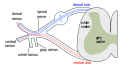 A spinal nerve with its ventral and dorsal roots. The dorsal root ganglion is the "spinal ganglion", following the dorsal root. | |