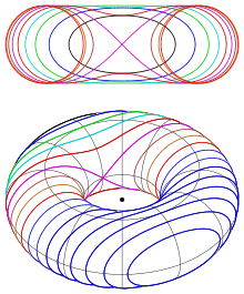 Spiric sections were first described by the ancient Greek geometer Perseus in roughly 150 BC, and are assumed to be the first toric sections to be described. The name spiric is due to the ancient notation spira of a torus.,[1][2]