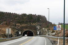 Core samples showed that the tunnel would have to be built 30 meters (98 ft) deeper than originally planned to avoid deposits.[42] The tunneling was undertaken by NCC Eeg-Henriksen from the Føyno side and by the Norwegian Public Roads Administration from the Sveio side.[3] Construction from Sveio started on 16 September 1997 and from Føyno on 6 March 1998.[43] The tunnel was built at an average speed of 55 meters (180 ft) per week, with the record being 96.7 meters (317 ft). The lowest point was reached on 5 May 1999 and the breakthrough took place on 2 September, five months before schedule.[3] Sixty people participated in a course to master fear of tunnels organized by the toll company.[44] When it opened, the tunnel was the longest and second-deepest subsea tunnel in Europe and Norway, after the Hitra Tunnel.[3]