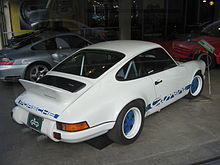 The whale tail came on the heels of the 1973 "duck tail" or Bürzel in German (as a part of the E-program), a smaller and less flared rear-spoiler fitted to 911 Carrera RS (meaning Rennsport or race sport in German), optional outside Germany.[7][9] The whaletail was originally designed for Porsche 930 and Porsche 935 race cars in 1973, and introduced to the Turbo in 1974 (as a part of the H-program); it was also an option on non-turbo Carreras from 1975.[19][20] Both types of spoilers were designed while Dr. Ernst Fuhrmann was serving as the Technical Director of Porsche AG.[21] In 1976, a rubber front chin spoiler was also introduced to offset the more effective spoiler.[8] By 1978, Porsche introduced another design for the rear spoiler, the "teatray", a boxier enclosure which accommodated the intercooler, and was also an option for the 911SC.[7][22]