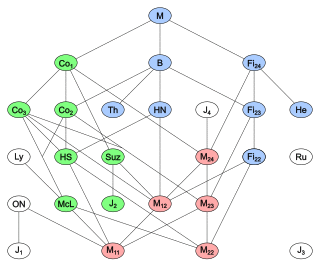 A simple group is a group G that does not have any normal subgroups except for the trivial group and G itself. The classification theorem states that the list of finite simple groups consists of 18 countably infinite families[1] plus 26 exceptions that do not follow such a systematic pattern. These 26 exceptions are the sporadic groups. They are also known as the sporadic simple groups, or the sporadic finite groups. Because it is not strictly a group of Lie type, the Tits group is sometimes regarded as a sporadic group,[2] in which case there would be 27 sporadic groups.