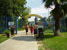 Harris County Precinct 4 operates parks in the Spring CDP. Southwell Park, a 5-acre (2.0 ha) facility located at 27419 Nelson Street, includes the B.F. Clark Community Building, a picnic pavilion with tables and a barbecue pit, one lighted basketball pavilion, barbecue grills, toilets, and two playgrounds: one for children aged 2 through 5 and one for those aged 5 through 12.[84] Bayer Park, a 30-acre (12 ha) facility at 24811 West Hardy Road, includes four lighted softball fields, seven lighted baseball fields, and toilets.[85] Pundt Park is a 380-acre (150 ha) park at 4129 Spring Creek Drive that was being developed as of 2008. The park was to have a canoe launch, a pavilion facility with a meeting room and toilets, a playground facility, picnic areas, and a trail system connecting Bayer Park to the Spring Creek Greenway.[86] Predinct 4 also operates the Mercer Arboretum and Botanic Gardens, south of and adjacent to the Spring CDP at 22306 Aldine Westfield Road.[87] The facility includes the Baldwin Boettcher Branch Library, an endangered species garden with a beaver pond, a canoe launch, picnic areas, a playground for children aged 6 through 12, a tea house, a trail, and a visitor center.[79][88]