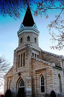 Spring City was first known as "Allred Settlement".[6] The original settlers in 1852 were under the leadership of James Allred and most of them were his family members. When an LDS ward was organized there in 1853, Ruben W. Allred was appointed the first bishop. The settlement was abandoned in the summer of 1853 because of ongoing conflict with the indigenous people of the area,[7] the Ute people, including San Pitch Utes, from which Sanpete County derives its name.[8][9] The village was reestablished as "Springtown" in 1859 by William Black, George Black and Joseph S. Black. Christen G. Larsen was made bishop of a new LDS ward in 1860.
