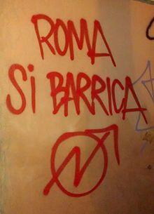 Anarchist squats include: Villa Vegan Squat, Ripa dei Malfattori (evicted), Corvaccio Squat (evicted) and Rosa Nera (evicted) in Milan, TeLOS in Saronno (evicted), El Paso, Asilo Occupato, Barocchio Squat and Mezcal Squat in Turin, Libera in Modena (evicted), Al Confino Squat in Cesena (evicted), Giustiniani 19 Squat (evicted) and Mainasso Occupato in Genova, La Riottosa Squat, Villa Panico (evicted) and Cecco Rivolta (evicted) in Florence, Bencivenga Squat, L38 Laurentino Squat, Ateneo Occupato, ZK Squatt and Torre Maura Occupata in Rome, Spazio Anarchico Occupato Gaetano Bresci in Catania, and others.