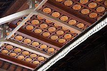 The golden canopy over the main shrine, built in 1987 by Prime Minister Ranasinghe Premadasa, and the golden fence which encircles the main shrine are other notable features.[8] The tooth relic is encased in seven golden caskets which are engraved with precious gemstones.[9] The caskets have a shape of a stupa. The procession casket which is used during the Kandy Esala Perahera is also displayed in the same chamber.