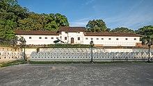 The royal palace is situated to the north of the temple.[10] John Pybus, who was on an embassy in 1762, gives a detailed description on the royal palace.[11] Vikramabahu III of Gampola (r. 1356-1374) and Sena Sammatha Wickramabahu of Kandy (r. 1469-1511) built royal palaces on this site. Vimaladharmasuriya I of Kandy undertook various decorations to the palace. The Dutch orientalist Philippus Baldaeus visited the palace with General Gerard Pietersz Hulft in 1656. The royal residence was known as "Maha Wasala" in Sinhalese starting in the Polonnaruwa period. The royal palace is also known as "Maligawa." There were three Wahalkadas and an 8 feet (2.4 m) high wall used as main entrances. The section of the palace facing the Natha Devale is said to be the oldest. During the beginning of the British period, it was used by government agent Sir John D'Oyly, 1st Baronet, of Kandy.[10] Successors of D'Oyly have continued to use it as their official residence. Today it is preserved as an archeological museum. Ulpen Ge and Queens Palace are the associated buildings of the palace.
