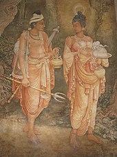 After the parinirvana of Gautama Buddha, according to the legend, the tooth relic was preserved in Kalinga and smuggled to the island by Princess Hemamali and her husband, Prince Dantha on the instructions of her father King Guhasiva.[2] They landed on the island in Lankapattana during the reign of Sirimeghavanna of Anuradhapura (301-328) and handed over the tooth relic. The king enshrined it Meghagiri Vihara (present day Isurumuniya) in Anuradhapura. Safeguard of the relic was a responsibility of the monarch, therefore over the years, the custodianship of relic came to symbolize the right to rule. Therefore, reigning monarchs built the tooth relic temples quite close to their royal residences, as was the case during the times of the Anuradhapura Kingdom, Kingdom of Polonnaruwa, and Kingdom of Dambadeniya. During the era of the Kingdom of Gampola, the relic was housed in Niyamgampaya Vihara. It is reported in the messenger poems such as Hamsa, Gira, and Selalihini that the temple of tooth relic was situated within the city of Sri Jayawardenepura Kotte when the Kingdom of Kotte was established there.[2]
