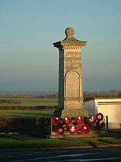 The war memorial is located on the grass along the B4265 road at Gileston Cross to the south of the village. It was built in around 1920 to commemorate those who died during the First World War. The memorial, built from Portland stone ashlar, is a square pillar raised on three steps with a dentilated cornice, capped by a ball.[20] The Church of St Athan contains monuments of the Berkerolles family with recumbent figures of a knight and his lady.[22]