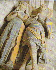Historical records indicate that in the Taxatio (1291) and Valor Ecclesiasticus (1535) the village was named Llandathan and the parish church named simply Tathana's.[4] St Athan's comprised three sub-manors: Castleton, East Orchard, and West Orchard.[6] The early history of the parish of Eglwys Brewis records that it was situated in the manor of St Athan and was held by the same lordship as that of Castleton.[6] Roman coins have been discovered in the vicinity including a find in 1798 in a field between St Athan and Eglwys Brewis.[7] The Castleon manor existed in St Athan from the Norman period under the lordship of the Nerber family. Norman castles were later constructed in West Orchard and East Orchard as manorial residences. In 1320, a Richard de Nerber was said to have "retained only half a knight's fee at St Athan."[8] However, from around 1240, the Berkerolles family appear to have received entitlements to the manorial estates of West and East Orchard and built a new manor house in West Orchard and later at East Orchard in 1377.[3] The earlier Norman castles appear to have been destroyed by Ifor Bach. The Berkerolles family's influence grew stronger in the 14th century. Sir Roger Berkerolles died in 1351; a tomb is dedicated to him in the parish church, which also contains his parents' remains. The current church is mainly dated to the 14th century and it is thought the Norman church originally here was ordered to be rebuilt by the Berkerolles.[9] Later, the manor fell under the Stradling family.[9]