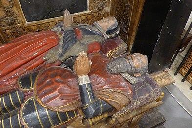 - Against the south wall of the church, sightly to the west of the south entrance, Sir John Spencer and his wife, 1609. Altar tomb under a canopy with recumbent figures, and a third kneeling figure.
