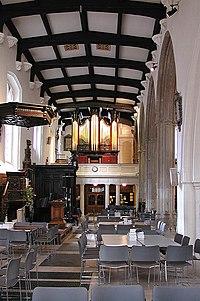 A new organ and organ loft were installed on the west end of the church in 1742, designed by Thomas Griffin. In 1874 the parish was united with that of St Martin Outwich when the latter's church was demolished, and the first incumbent of the new parish was John Bathurst Deane.