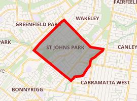 - ^ a b c Australian Bureau of Statistics (27 June 2017). "St Johns Park (State Suburb)". 2016 Census QuickStats. Retrieved 27 June 2017.