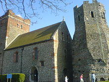 There are records of a church being built 'within the castle' (Latin 'in castra') by Eadbald of Kent in the 630s. However, it is unclear whether this means within the Saxon burgh (usually dated to later than 630) on the Eastern Heights, or within the ruins of old Roman fortifications in the valley. The large, late-Saxon cemetery around the present church does suggest the existence of a c.600 church,[4] but not definitively.