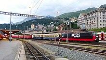 St. Moritz is the highest town in the country with a railway station. St. Moritz railway station is situated in the centre of the town, near the lakeshore and at the bottom of Via Serlas. It is operated by the Rhaetian Railway, and is the terminus that railway's Albula and Bernina lines. The Glacier Express and Bernina Express trains stop at St. Moritz.
