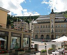 St. Moritz (also German: Sankt Moritz, Romansh: , Italian: San Maurizio,[a] French: Saint-Maurice) is a high Alpine resort town in the Engadine in Switzerland, at an elevation of about 1,800 metres (5,910 ft) above sea level. It is Upper Engadine's major town and a municipality in the district of Maloja in the Swiss canton of Graubünden.