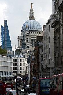 St Paul's Cathedral is an Anglican cathedral in London, United Kingdom, which, as the cathedral of the Bishop of London, serves as the mother church of the Diocese of London. It sits on Ludgate Hill at the highest point of the City of London and is a Grade I listed building. Its dedication to Paul the Apostle dates back to the original church on this site, founded in AD 604.[1] The present cathedral, dating from the late 17th century, was designed in the English Baroque style by Sir Christopher Wren. Its construction, completed in Wren's lifetime, was part of a major rebuilding programme in the City after the Great Fire of London.[2] The earlier Gothic cathedral (Old St Paul's Cathedral), largely destroyed in the Great Fire, was a central focus for medieval and early modern London, including Paul's walk and St Paul's Churchyard being the site of St Paul's Cross.