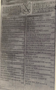 - Dugdale, William (1658). The History of St. Pauls Cathedral in London, from Its Foundation Untill These Times: Extracted Out of Originall Charters, Records, Leiger Books, and Other Manuscript,. Beautified with Sundry Prospects of the Church, Figures of Tombes and Monuments. Tho. Warren.