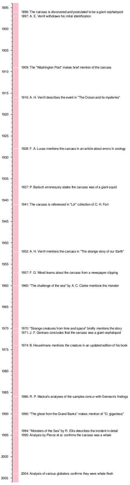 In the February issue of the American Journal of Science, Verrill even gave the animal a scientific name, Octopus giganteus (Verrill, 1897). He also added:[1]