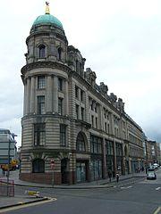 St Cuthbert's had many shops throughout Edinburgh, including a department store in Bread Street which was built in three stages to designs by three architects: John McLachlan in 1892; Thomas P. Marwick in 1898 and 1914 and Thomas Waller Marwick in 1936. The 1930s section features a glass 'curtain wall', the first of its kind in Scotland, in contrast to the stone facades of its late 19th-/early 20th-century neighbours. The store closed in the early 1990s and buildings were converted for use as the Point Hotel and Conference Centre in 1999.