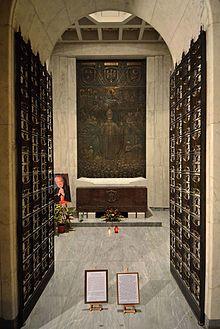 The painting of the Virgin and Child was created in 1618 for King Sigismund III Vasa especially to place on the central altar of the St John's Cathedral.[1] As a masterpiece it was confiscated on Napoleon's order and transported to Paris.[4] It was retrieved by Warsaw authorities in 1820s after the Congress of Vienna. It survived many wars and the bombing of Warsaw since it was painted, but did not survive World War II. Among the sculptures lost due to German bombardment, the most worthy of mentioning was a marble bust of Jan Franciszek Bieliński, voivode of Malbork (died 1685), carved by Jean-Joseph Vinache.[5]
