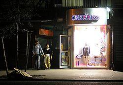 - In the opening credits to Saturday Night Live (c. 2010), a shot of Cherries adult entertainment store's neon signage is featured.