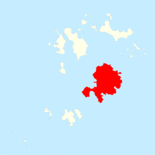 St Mary's has an area of 6.58 square kilometres (2.54 sq mi)[1] — 40 percent of the total land area of the Isles of Scilly — this includes four small tidal islands which connect with St Mary's at low tide: Toll’s Island, Taylor’s Island, Newford Island and the island at Innisidgen.