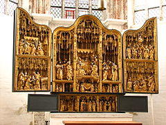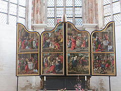 - Winged altarpiece by Christian Swarte (c. 1495) with Woman of the Apocalypse, now installed behind the main altar