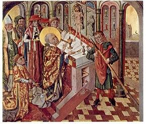 Among the artefacts destroyed was the famous Totentanzorgel (Danse Macabre organ), an instrument played by Dieterich Buxtehude and probably Johann Sebastian Bach. Other works of art destroyed in the fire include the Mass of Saint Gregory by Bernt Notke, the monumental Danse Macabre, originally by Bernt Notke but replaced by a copy in 1701, the carved figures of the rood screen, the Trinity altarpiece by Jacob van Utrecht (formerly also attributed to Bernard van Orley) and the Entrance of Christ into Jerusalem by Friedrich Overbeck. Sculptures by the woodcarver Benedikt Dreyer were also lost in the fire: the wooden statues of the saints on the west side of the rood screen and the organ sculpture on the great organ from around 1516–18[1] and Man with Counting Board.[2] Also destroyed in the fire were the mediaeval stained glass windows from the St. Mary Magdalene Church, which were installed in St. Mary's Church from 1840 on, after the St. Mary Magdalene Church was demolished because it was in danger of collapse. Photographs by Lübeck photographers like William Castelli give an impression of what the interior looked like before the War.