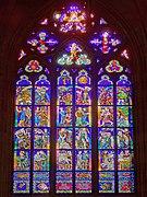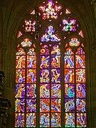 In the 1920s the sculptor Vojtěch Sucharda worked on the façade, and the famous Czech Art Nouveau painter Alfons Mucha decorated the new windows in the north part of nave. Frantisek Kysela designed the Rose Window 1925-7 which depicts scenes from the Biblical story of creation. By the time of St. Wenceslas jubilee in 1929, the St. Vitus cathedral was finally finished, nearly 600 years after it was begun. Despite the fact that entire western half of Cathedral is a Neo-Gothic addition, much of the design and elements developed by Peter Parler were used in the restoration, giving the Cathedral as a whole a harmonious, unified look.