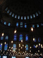 The creation of stained glass in Southwest Asia began in ancient times. One of the region's earliest surviving formulations for the production of colored glass comes from the Assyrian city of Nineveh, dating to the seventh century BC. The Kitab al-Durra al-Maknuna, attributed to the 8th century alchemist Jābir ibn Hayyān, discusses the production of colored glass in ancient Babylon and Egypt. The Kitab al-Durra al-Maknuna also describes how to create colored glass and artificial gemstones made from high-quality stained glass.[21] The tradition of stained glass manufacture has continued, with mosques, palaces, and public spaces being decorated with stained glass throughout the Islamic world. The stained glass of Islam is generally non-pictorial and of purely geometric design, but may contain both floral motifs and text.