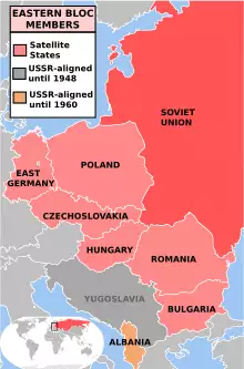 Stalin's government promoted Marxism–Leninism abroad through the Communist International and supported European anti-fascist movements during the 1930s, particularly in the Spanish Civil War. In 1939, it signed a non-aggression pact with Nazi Germany, resulting in the Soviet invasion of Poland. Germany ended the pact by invading the Soviet Union in 1941. Despite initial setbacks, the Soviet Red Army repelled the German incursion and captured Berlin in 1945, ending World War II in Europe. The Soviets annexed the Baltic states and helped establish Soviet-aligned governments throughout Central and Eastern Europe, China, and North Korea. The Soviet Union and the United States emerged from the war as global superpowers. The tensions that arose between the Soviet-backed Eastern Bloc and U.S.-backed Western Bloc became known as the Cold War. Stalin led his country through the post-war reconstruction, during which it developed a nuclear weapon in 1949. In these years, the country experienced another major famine and an antisemitic campaign peaking in the doctors' plot. After Stalin's death in 1953, he was eventually succeeded by Nikita Khrushchev, who denounced him and initiated the de-Stalinisation of Soviet society.