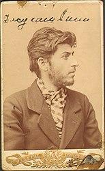 Besarion was a shoemaker and owned his own workshop;[12] it was initially a financial success but later fell into decline,[13] and the family found itself living in poverty.[14] Besarion became an alcoholic[15] and drunkenly beat his wife and son.[16] Ekaterine and Stalin left the home by 1883 and began a wandering life, moving through nine different rented rooms over the next decade.[17] In 1886, they moved into the house of a family friend, Father Christopher Charkviani.[18] Ekaterine worked as a house cleaner and launderer and was determined to send her son to school.[19] In September 1888, Stalin enrolled at the Gori Church School, a place secured by Charkviani.[20] Although he got into many fights,[21] Stalin excelled academically,[22] displaying talent in painting and drama classes,[23] writing his own poetry,[24] and singing as a choirboy.[25] Stalin faced several severe health problems: An 1884 smallpox infection left him with facial scars;[26] and at age 12 he was seriously injured when he was hit by a phaeton, likely the cause of a lifelong disability in his left arm.[27]
