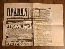 In January 1912, while Stalin was in exile, the first Bolshevik Central Committee was elected at the Prague Conference.[119] Shortly after the conference, Lenin and Grigory Zinoviev decided to co-opt Stalin to the committee.[119] Still in Vologda, Stalin agreed, remaining a Central Committee member for the rest of his life.[120] Lenin believed that Stalin, as a Georgian, would help secure support for the Bolsheviks from the empire's minority ethnicities.[121] In February 1912, Stalin again escaped to Saint Petersburg,[122] tasked with converting the Bolshevik weekly newspaper, Zvezda ("Star") into a daily, Pravda ("Truth").[123] The new newspaper was launched in April 1912,[124] although Stalin's role as editor was kept secret.[124]