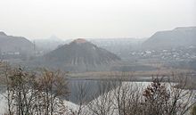 The city stretches 28 km (17 mi) from north to south and 55 km (34 mi) from east to west. There are 2 nearby reservoirs: Nyzhnekalmius (60 ha), and the "Donetsk Sea" (206 ha). 5 rivers flow through the city, including the Kalmius, Asmolivka (13 km), Cherepashkyna (23 km), Skomoroshka and Bakhmutka. The city also contains a total of 125 spoil tips.[34]
