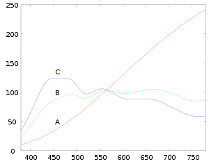Henderson, Stanley Thomas; Hodgkiss, D. (1964). "The spectral energy distribution of daylight". British Journal of Applied Physics. 15 (8): 947–952. doi:10.1088/0508-3443/15/8/310. - ^ Simonds, John L. (August 1963). "Application of Characteristic Vector Analysis to Photographic and Optical Response Data". JOSA. 53 (8): 968–974. doi:10.1364/JOSA.53.000968.
