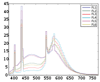 - ^ Spectral power distribution of Illuminants Series F (Excel), in 5 nm increments from 380 nm to 780 nm.