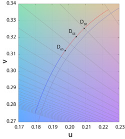 - ^ Kelly, Kenneth L. (August 1963). "Lines of Constant Correlated Color Temperature Based on MacAdam's (u,v) Uniform Chromaticity Transformation of the CIE Diagram". JOSA. 53 (8): 999–1002. doi:10.1364/JOSA.53.000999.