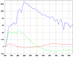 In simpler terms, the SPD of the studied daylight samples can be expressed as the linear combination of three, fixed SPDs. The first vector (S0) is the mean of all the SPD samples, which is the best reconstituted SPD that can be formed with only a fixed vector. The second vector (S1) corresponds to yellow–blue variation, accounting for changes in the correlated color temperature due to presence or absence of clouds or direct sunlight.[8] The third vector (S2) corresponds to pink–green variation caused by the presence of water in the form of vapor and haze.[8]